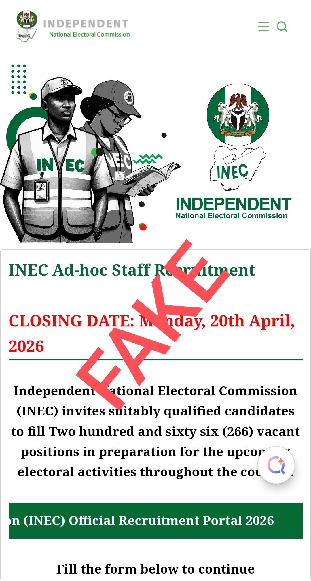 Read full article →INEC Disowns Fake Ad-hoc Recruitment Portal