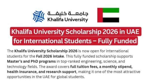Scholarship and Job Hunt Apply: Khalifa University Opens Fully Funded 2026 Scholarship December 12, 2025 Khalifa University Opens Fully Funded 2026 Scholarship Read full article →